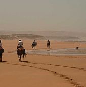 Tur runt Essaouira. Du kommar att rida ganske mycket längs kysten och på stranden, genom skogar af arganier och mimosa, genom små charmiga byar och fiskelägen.