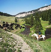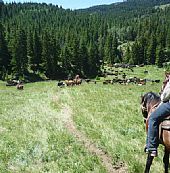 Upplev det autentiska ranchlivet i Wyoming. Vi ska driva 300 kor och deras kalvar från ranchen upp till deras sommarbete i Big Horns-bergen. En tur på 48 miles genom något av det vackraste landskap man kan tänka sig.