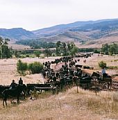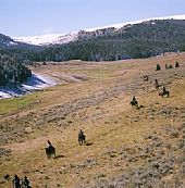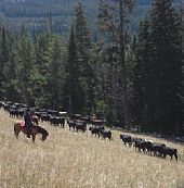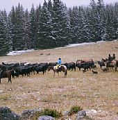 I september ska boskapen drivas tillbaka till farmen från sommarbetet. Vi samlas på höglandet vid Big Horn och driver hela flocken på ca 1000 djur ner genom Little Horn Canyon.