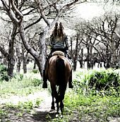 Solsemester vid en av Spaniens bästa badstränder med ridning på härliga Andalusiska hästar. Du rider 2 timmar eller 3½-4 timmar varje dag efter eget val. Varierad ridning i vacker terräng.