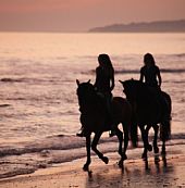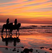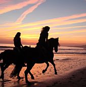 Även en mindre erfaren ryttare kan njuta av denna tur – det finns en häst för dig också, så du kan få njuta av en lugn tur, i solnedgången längs stranden.