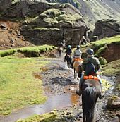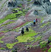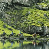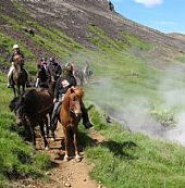 Bland dalar och heta källor turen går över vulkanen Hengills svarta lava in i Marardaluren grön lockande dal som kallas för hästarnas dal. Vi rider vid foten av det sägenomspunna bergspartiet Jórukleif och fortsätter längs med stranden av Islands största sjö Thingvallavatn, nära den klyfta där islänningarna i århundraden hållit ting.