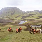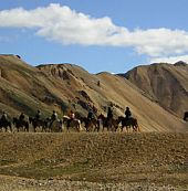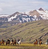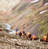 Från gården Fellsmuli nedanför vulkanen Hekla tar vi oss till Landmannalaugar, en dal på det isländska höglandet som är bäst känd för sina färgglada bergskedjor, omfattande lavafält och naturliga heta källor. Vi kommer att rida över höglandet längs med vulkanen Hekla tills vi når Landmannagrottan.