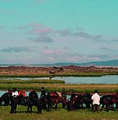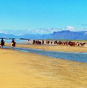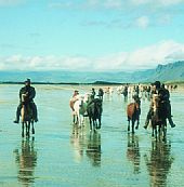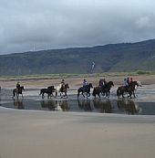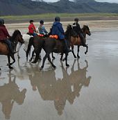 Tur till Islands västland. Färden är omväxlande och innan du når glaciären Snæfellsjökull, får du uppleva naturens rika färgskiftningar. Vi rider på gräsmarker i grönskande dalar, på lavans svarta mark och på strandens gyllene sand.